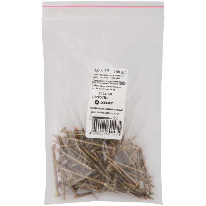 Шурупы желтопассированные, универсальные 3 х 40 100 шт Фасовка (21140-0)