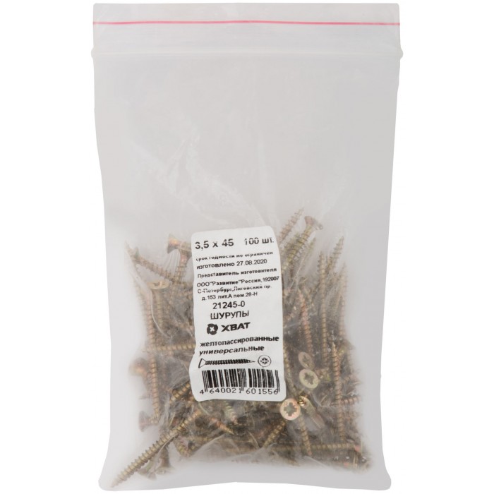 Шурупы желтопассированные, универсальные 3,5 х 45 100 шт Фасовка (21245-0)