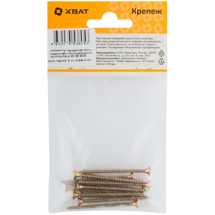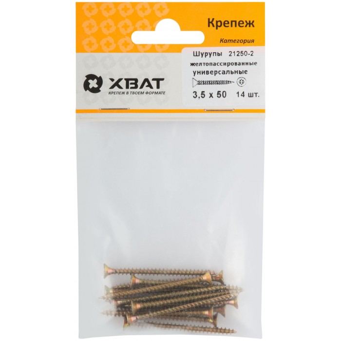 Шурупы желтопассированные, универсальные 3,5 х 50 (фасовка 14 шт) (21250-2)