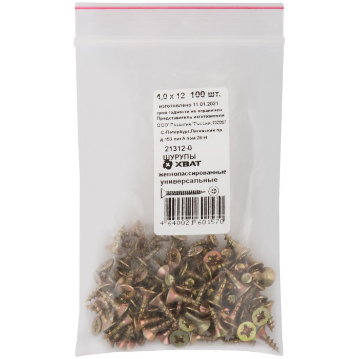 Шурупы желтопассированные, универсальные 4 х 12 100 шт Фасовка (21312-0)