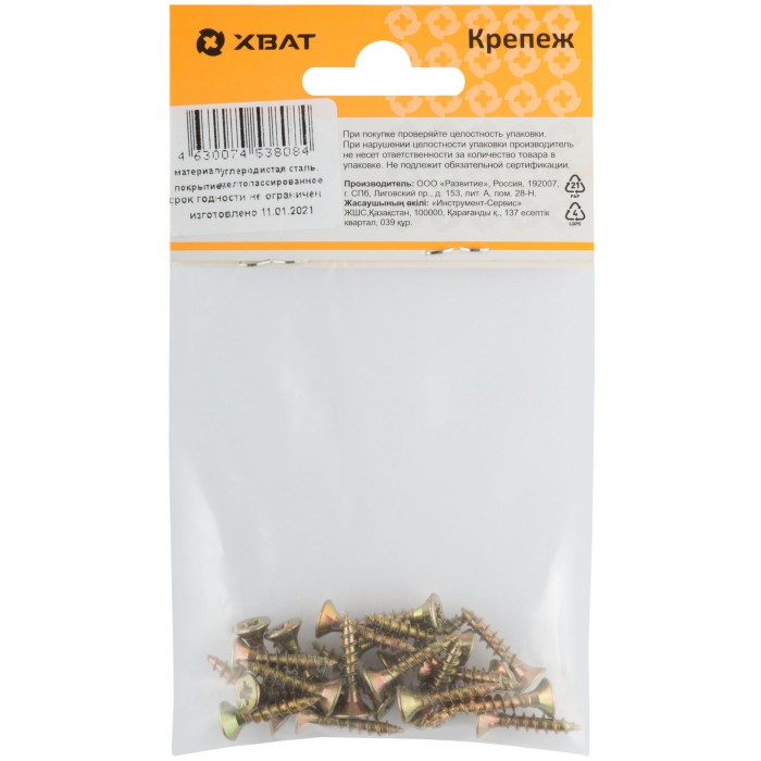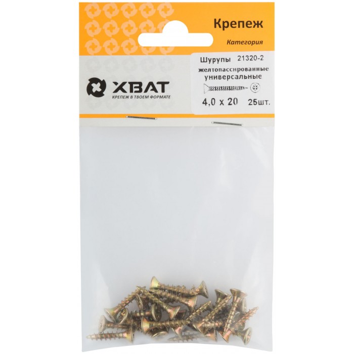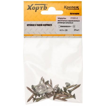 Шурупы желтопассированные, универсальные 4 х 20 ( фасовка 25 шт.) (21320-2)