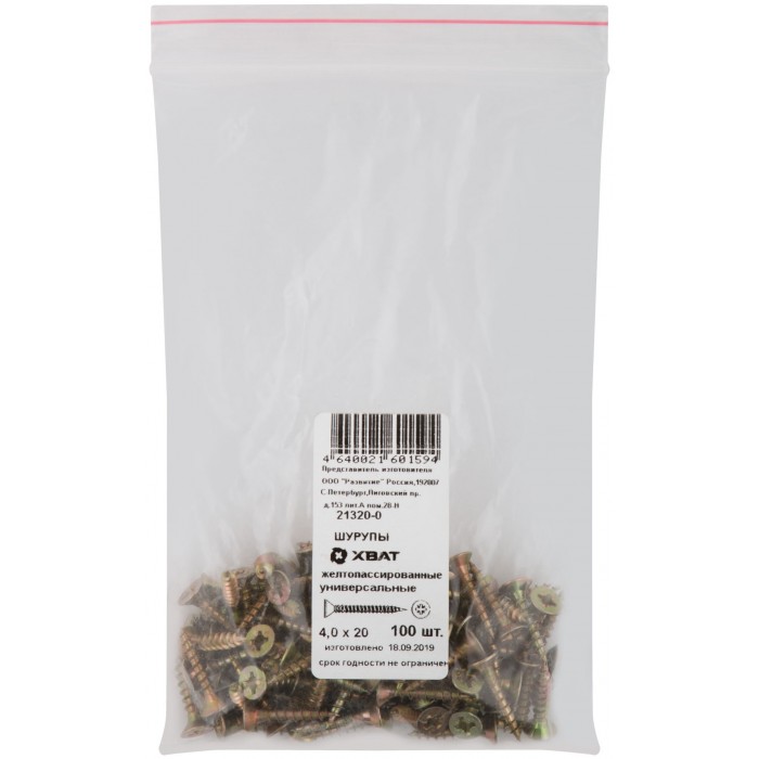 Шурупы желтопассированные, универсальные 4 х 20 100 шт Фасовка (21320-0)