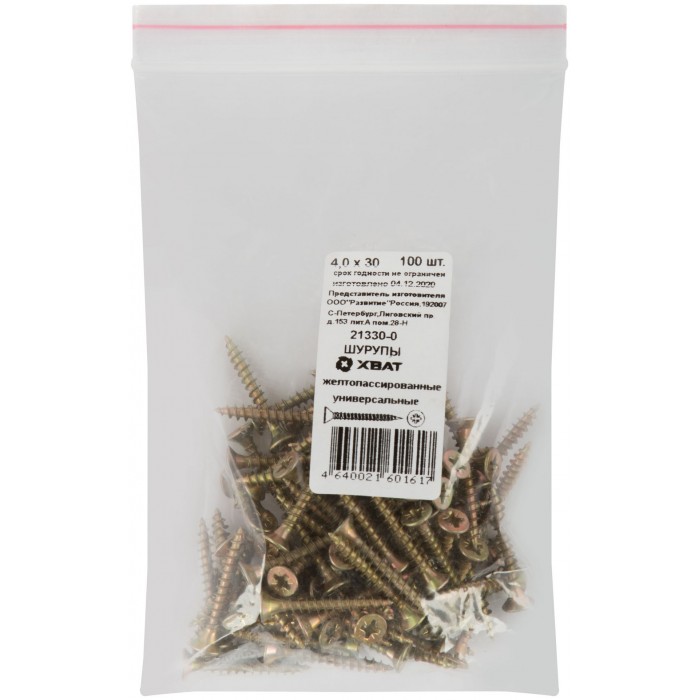 Шурупы желтопассированные, универсальные 4 х 30 100 шт Фасовка (21330-0)