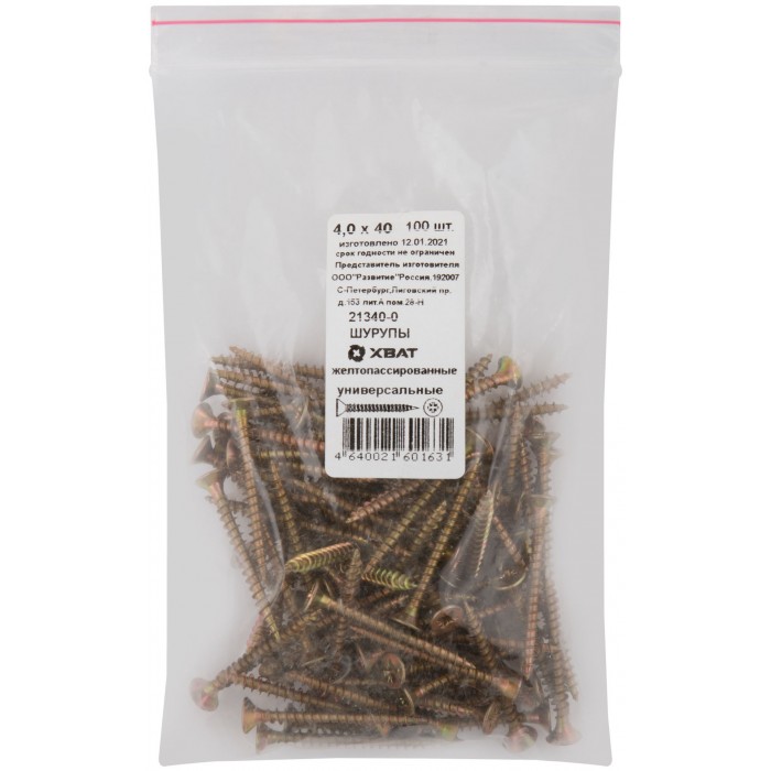 Шурупы желтопассированные, универсальные 4 х 40 100 шт Фасовка (21340-0)