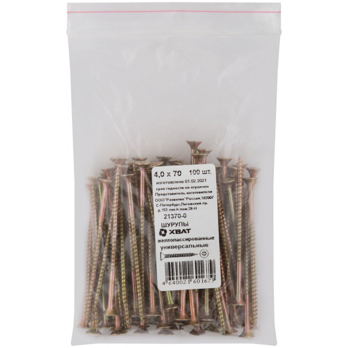 Шурупы желтопассированные, универсальные 4 х 70 100 шт Фасовка (21370-0)
