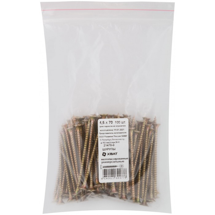 Шурупы желтопассированные, универсальные 4,5 х 70 100 шт Фасовка (21470-0)