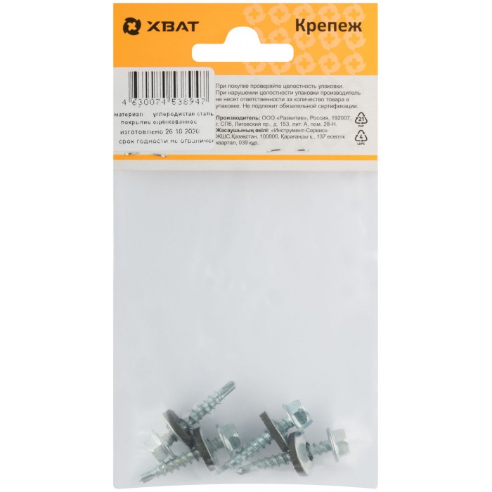 Некрашеный, с прорезиненной шайбой EPDM. Предназначен для крепления кровельных и фасадных материалов к деревянной обрешетке. Частый шаг резьбы, наконечник сверло №2. Изготовлен из углеродистой стали, покрытие - белый цинк.