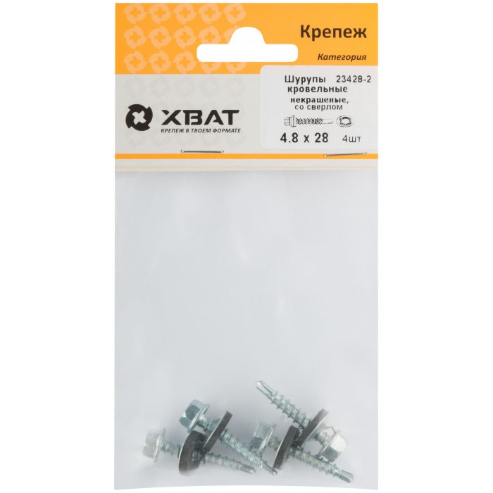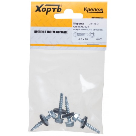 Шурупы кровельные некрашеные, со сверлом 4.8 х 28 ( фасовка 4 шт.) (23428-2)