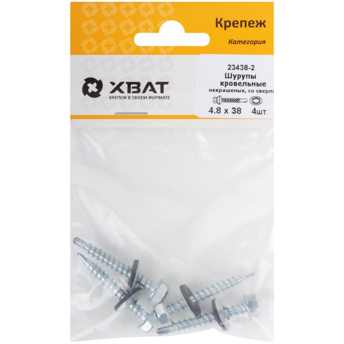 Шурупы кровельные некрашеные, со сверлом 4.8 х 38 ( фасовка 4 шт.) (23438-2)