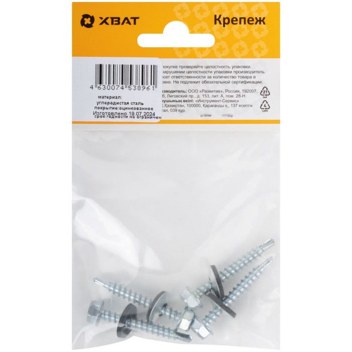 Некрашеный, с прорезиненной шайбой EPDM. Предназначен для крепления кровельных и фасадных материалов к деревянной обрешетке. Частый шаг резьбы, наконечник сверло №2. Изготовлен из углеродистой стали, покрытие - белый цинк.