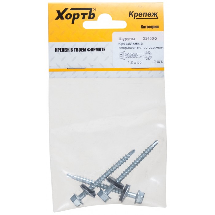 Шурупы кровельные некрашеные, со сверлом 4.8 х 50 ( фасовка 3 шт.) (23450-2)