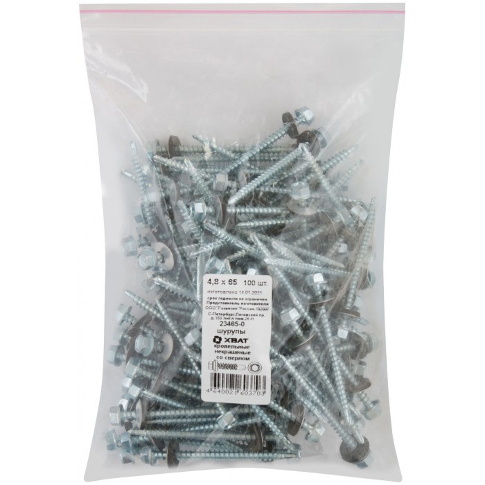 Шурупы кровельные некрашеные, со сверлом 4.8 х 65 100шт Фасовка (23465-0)