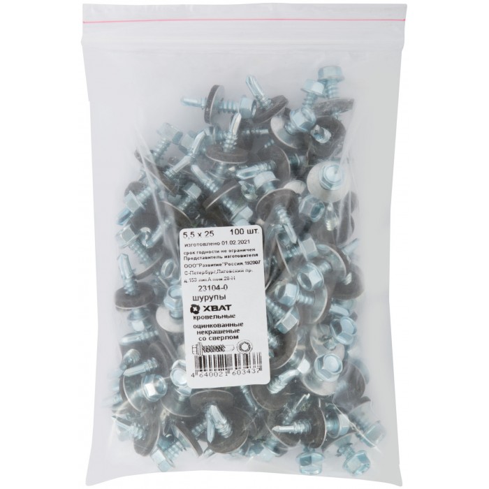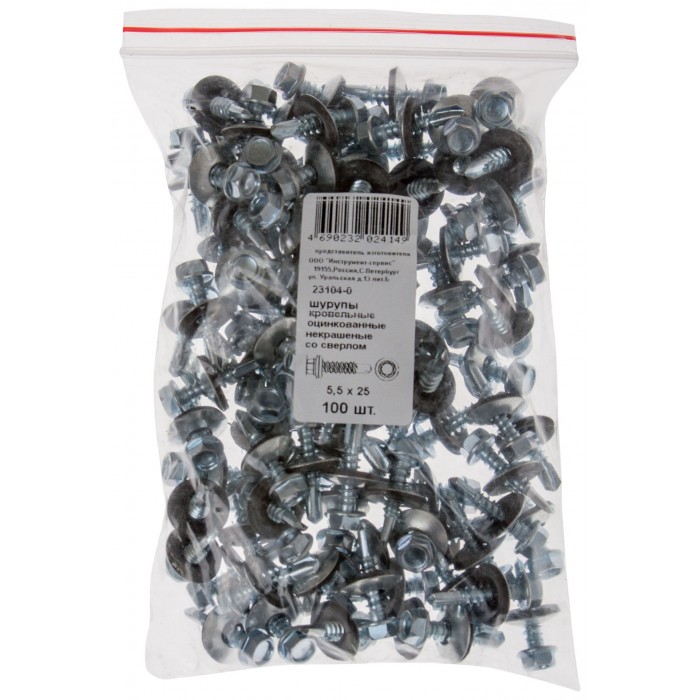 Шурупы кровельные оцинк. некрашеные, со сверлом М5,5 х 25 100шт. Фасовка (23104-0)