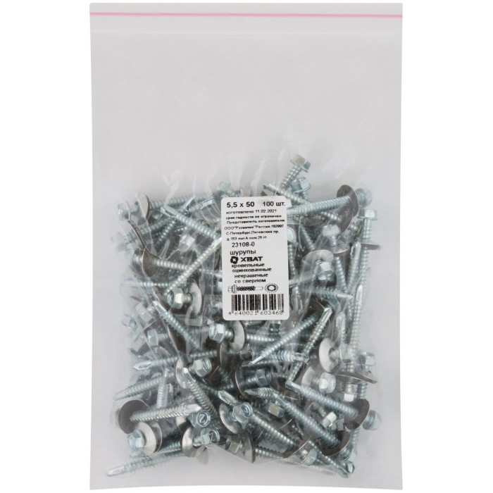 Шурупы кровельные оцинк. некрашеные, со сверлом М5,5 х 50 100шт. Фасовка (23108-0)