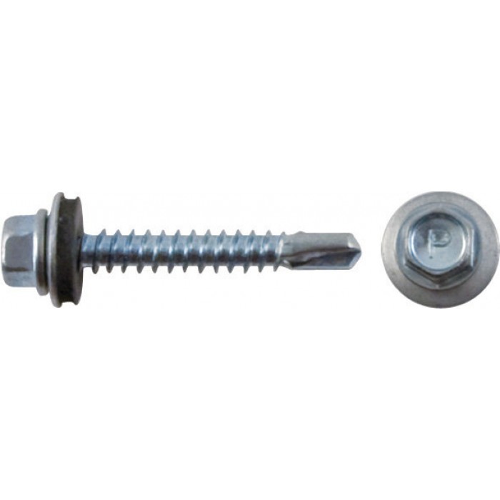 Некрашеный, с прорезиненной шайбой EPDM. Предназначен для крепления кровельных и фасадных материалов к деревянной обрешетке. Частый шаг резьбы, наконечник сверло №2. Изготовлен из углеродистой стали, покрытие - белый цинк.