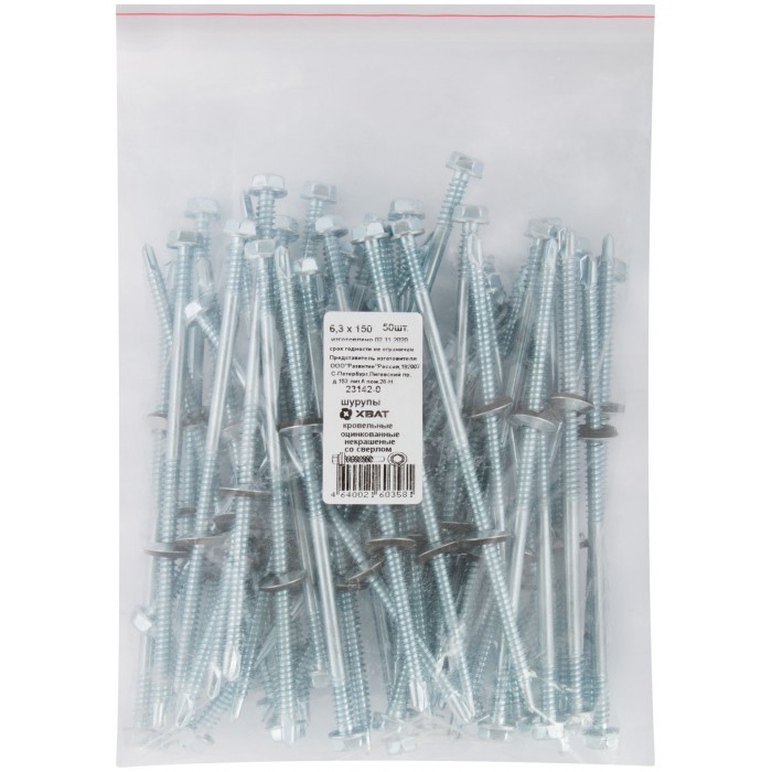 Шурупы кровельные оцинк. некрашеные, со сверлом М6,3 х 150 50шт. Фасовка (23142-0)