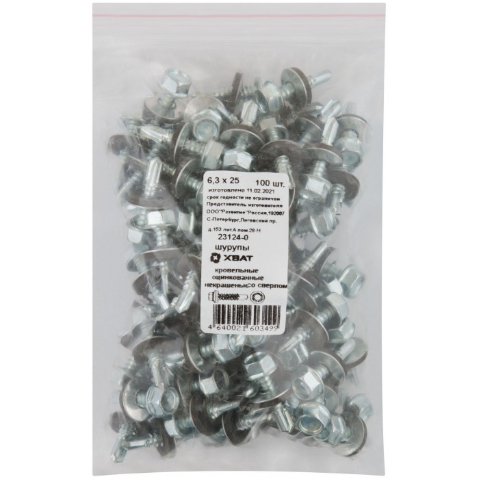 Шурупы кровельные оцинк. некрашеные, со сверлом М6,3 х 25 100шт. Фасовка (23124-0)