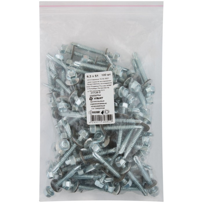 Шурупы кровельные оцинк. некрашеные, со сверлом М6,3 х 51 100шт. Фасовка (23128-0)