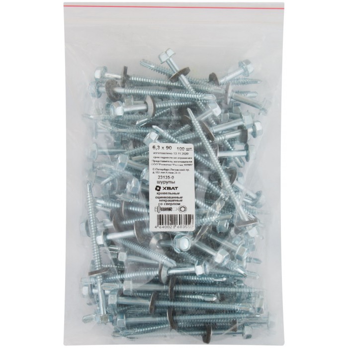 Шурупы кровельные оцинк. некрашеные, со сверлом М6,3 х 90 100шт. Фасовка (23135-0)