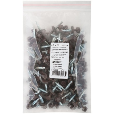 Шурупы кровельные со сверлом 4.8 х 28 коричневый 100шт , RAL 8017 Фасовка (23515-0)