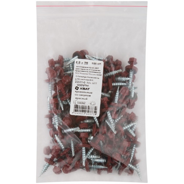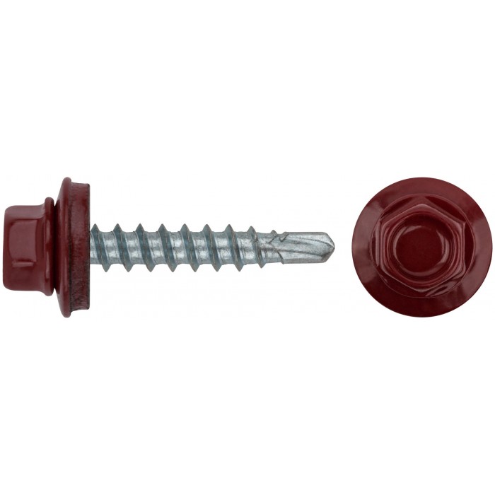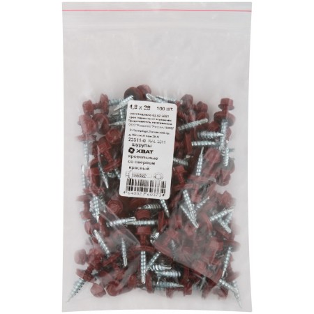 Шурупы кровельные со сверлом 4.8 х 28 красный 100шт , RAL 3011 Фасовка (23511-0)