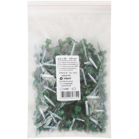 Шурупы кровельные со сверлом 4.8 х 28 зеленый 100шт , RAL 6002 Фасовка (23512-0)