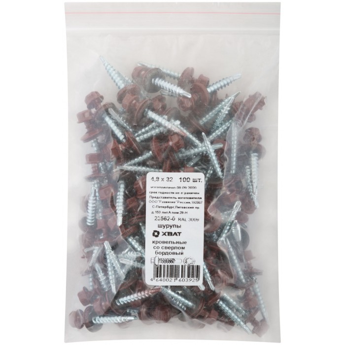 Шурупы кровельные со сверлом 4.8 х 32, бордовый RAL-3009 100шт. Фасовка (23562-0)