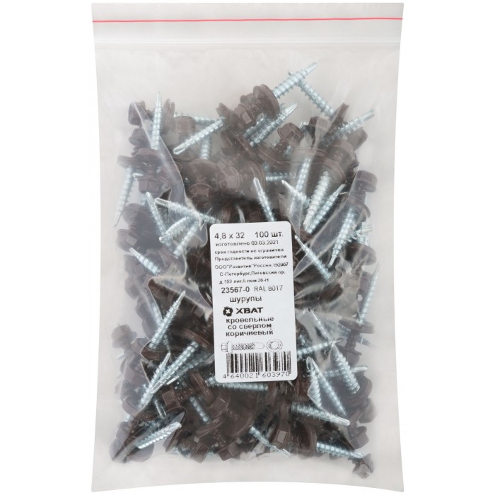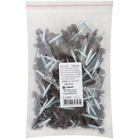 Шурупы кровельные со сверлом 4.8 х 32, коричневый RAL-8017 100шт. Фасовка (23567-0)