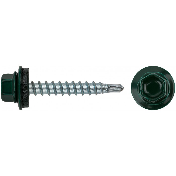Шурупы кровельные со сверлом 4.8 х 32, темно-зеленый RAL-6005 (фасовка 250шт) (23565-4)