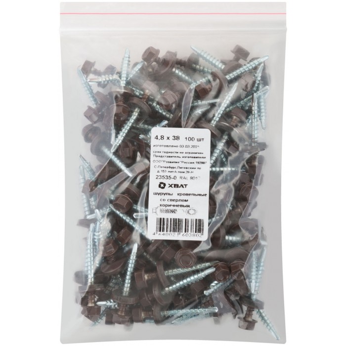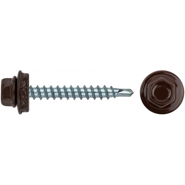 Шурупы кровельные со сверлом 4.8 х 38 коричневый 100шт , RAL 8017 Фасовка (23535-0)