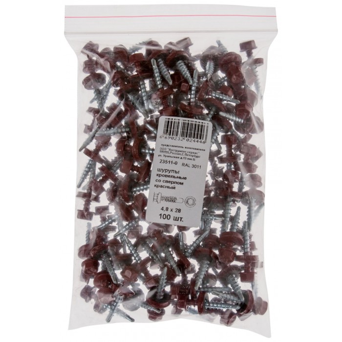Шурупы кровельные со сверлом 4.8 х 38 красный 100шт , RAL 3011 Фасовка (23531-0)