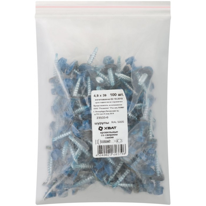Шурупы кровельные со сверлом 4.8 х 38 синий 100шт , RAL 5005 Фасовка (23533-0)