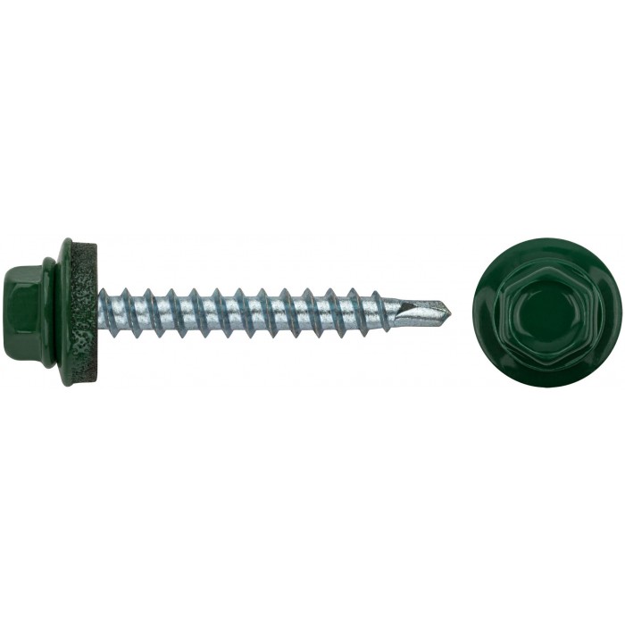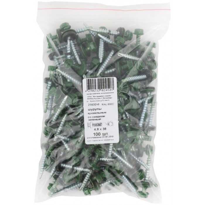 Шурупы кровельные со сверлом 4.8 х 38 зеленый 100шт , RAL 6002 Фасовка (23532-0)
