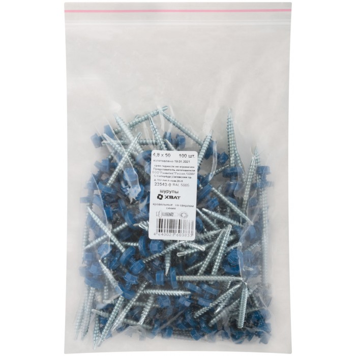 Шурупы кровельные со сверлом 4.8 х 50 синий 100шт , RAL 5005 Фасовка (23543-0)