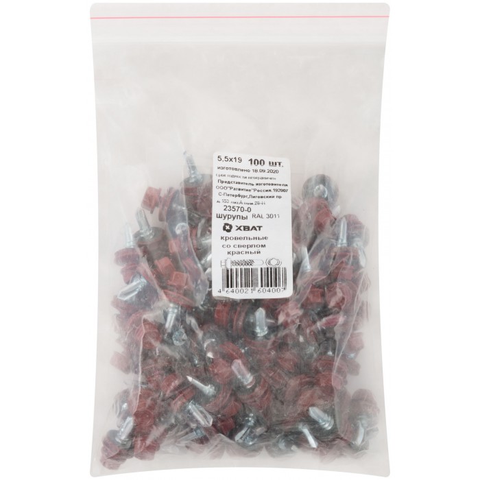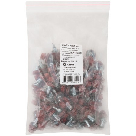 Шурупы кровельные со сверлом 5,5 х 19, красный RAL-3011 100шт. Фасовка (23570-0)