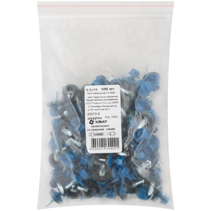 Шурупы кровельные со сверлом 5,5 х 19 синий 100шт , RAL 5005 Фасовка (23572-0)