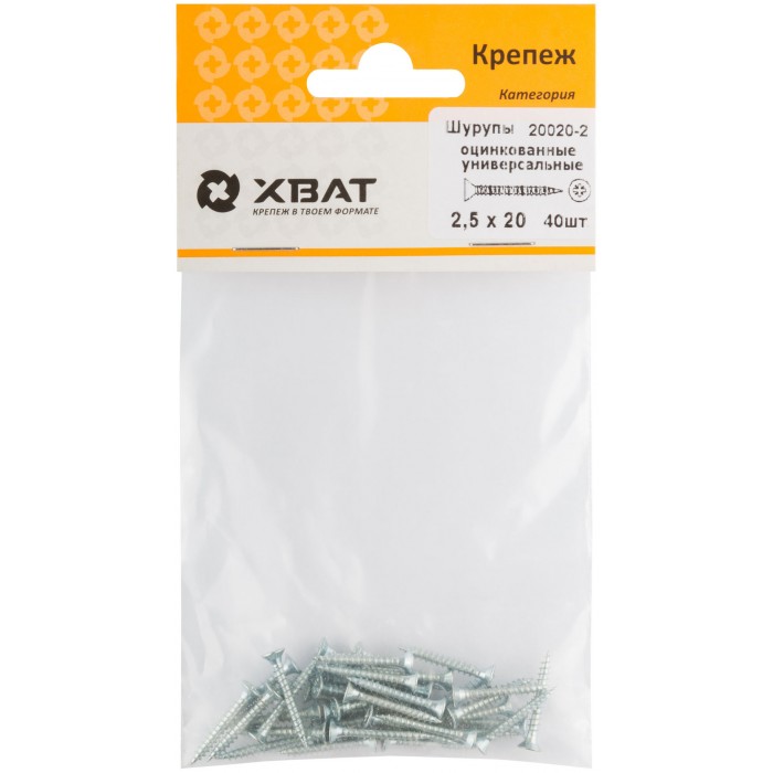 Шурупы оцинкованные, универсальные 2,5 х 20 (фасовка 40 шт.) (20020-2)