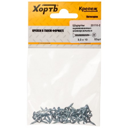 Шурупы оцинкованные, универсальные 3 х 10 (фасовка 53 шт) (20110-2)
