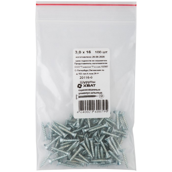 Шурупы оцинкованные, универсальные 3 х 16 100 шт Фасовка (20116-0)