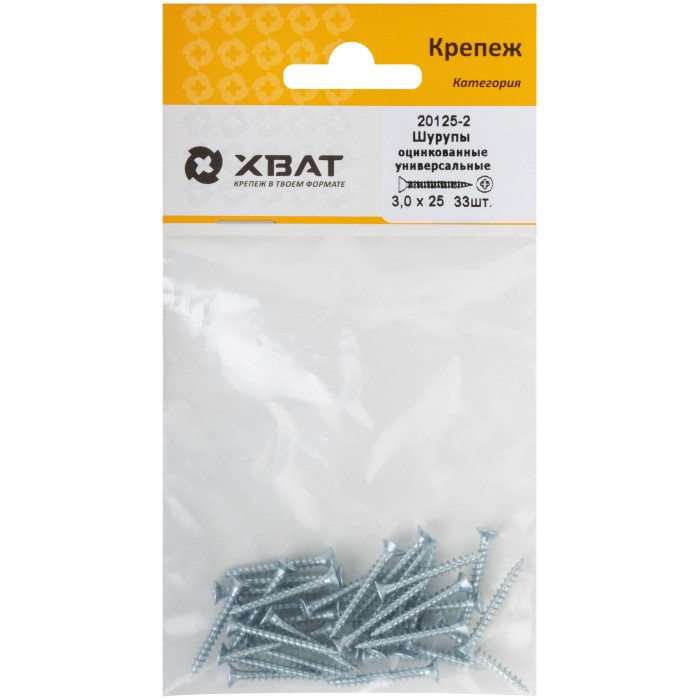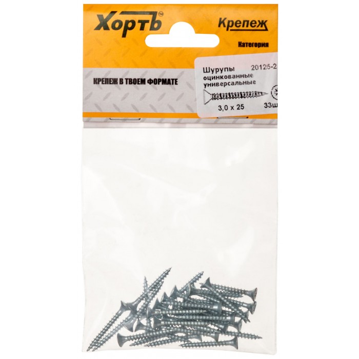 Шурупы оцинкованные, универсальные 3 х 25 (фасовка 33 шт) (20125-2)