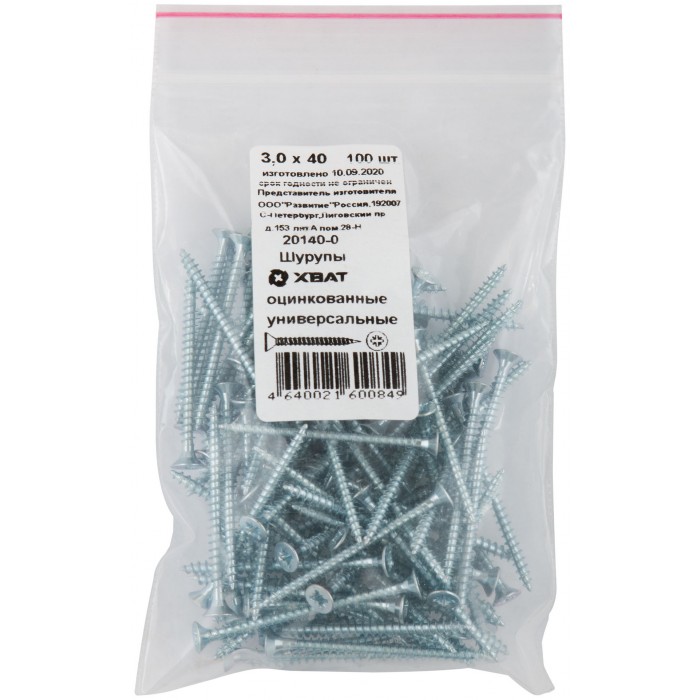 Шурупы оцинкованные, универсальные 3 х 40 100 шт Фасовка (20140-0)