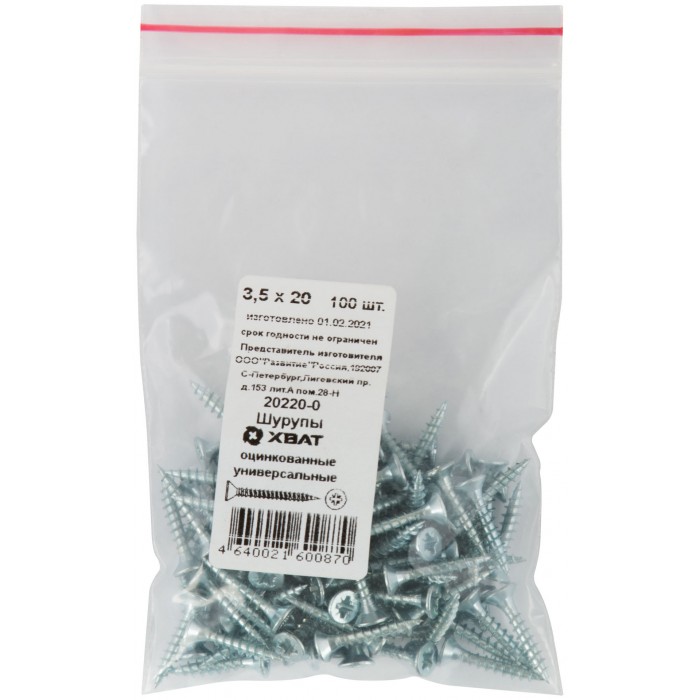 Шурупы оцинкованные, универсальные 3,5 х 20 100 шт Фасовка (20220-0)