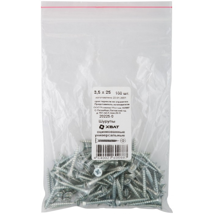 Шурупы оцинкованные, универсальные 3,5 х 25 100 шт Фасовка (20225-0)