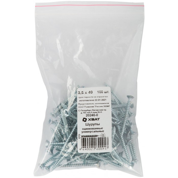 Шурупы оцинкованные, универсальные 3,5 х 40 100 шт Фасовка (20240-0)