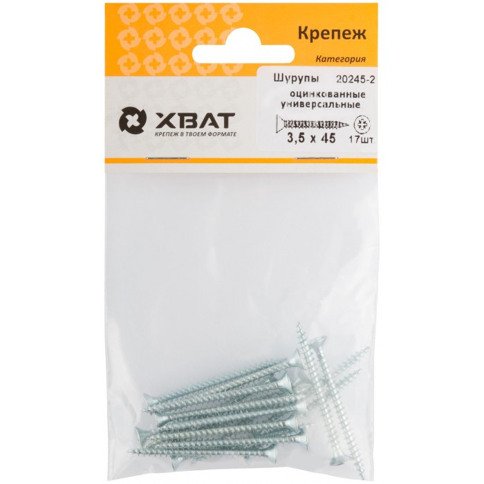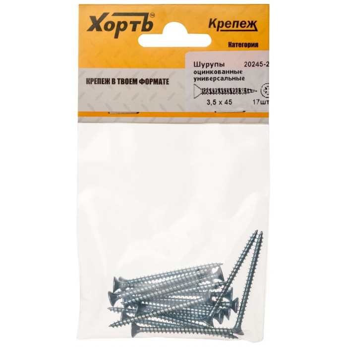 Шурупы оцинкованные, универсальные 3.5 х 45 (фасовка 17 шт) (20245-2)