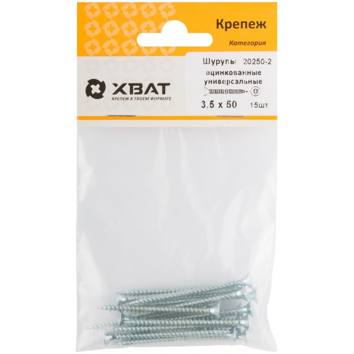 Шурупы оцинкованные, универсальные 3.5 х 50 (фасовка 15 шт) (20250-2)