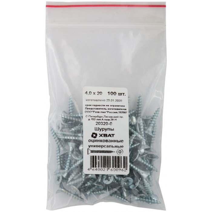 Шурупы оцинкованные, универсальные 4 х 20 100 шт Фасовка (20320-0)