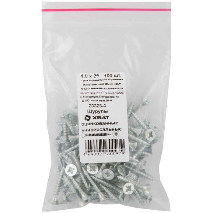 Шурупы оцинкованные, универсальные 4 х 25 100 шт Фасовка (20325-0)