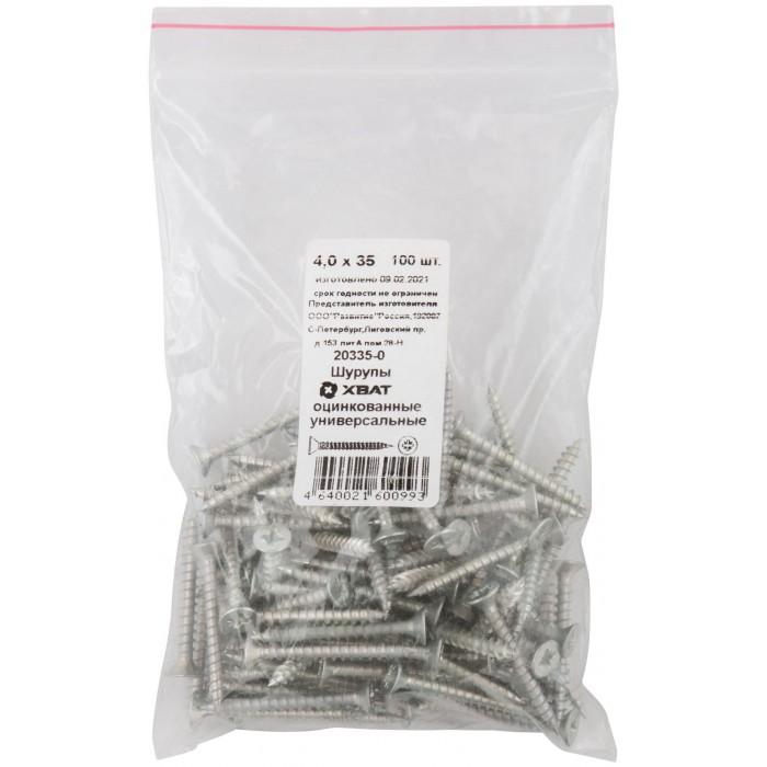 Шурупы оцинкованные, универсальные 4 х 35 100 шт Фасовка (20335-0)