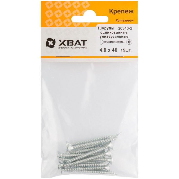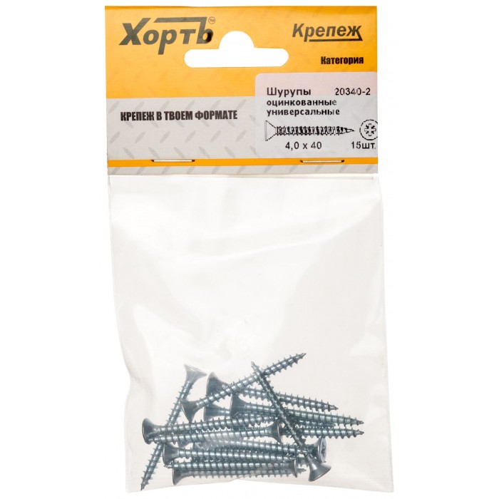 Шурупы оцинкованные, универсальные 4 х 40 (фасовка 15 шт) (20340-2)